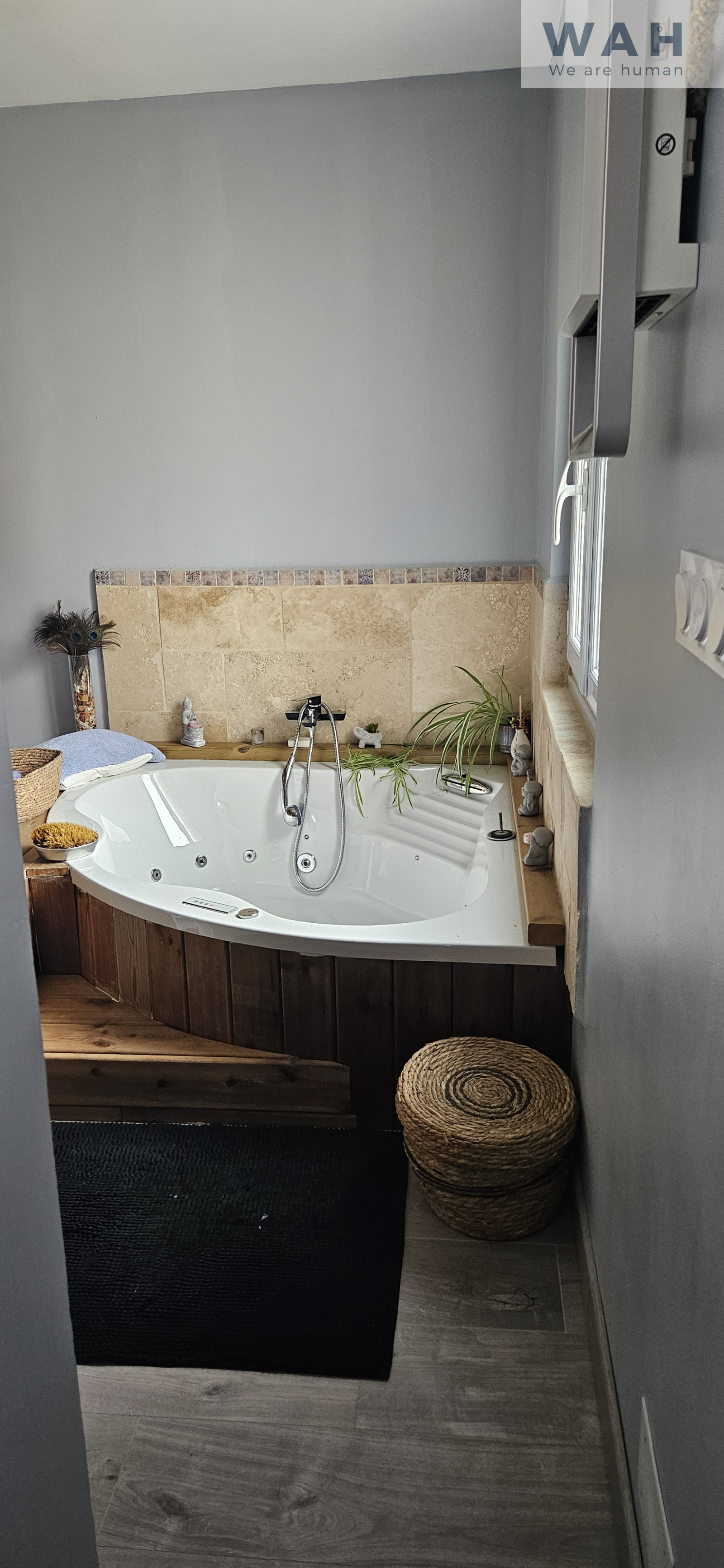 - une salle de bain avec baignoire balnéo, douche et wc