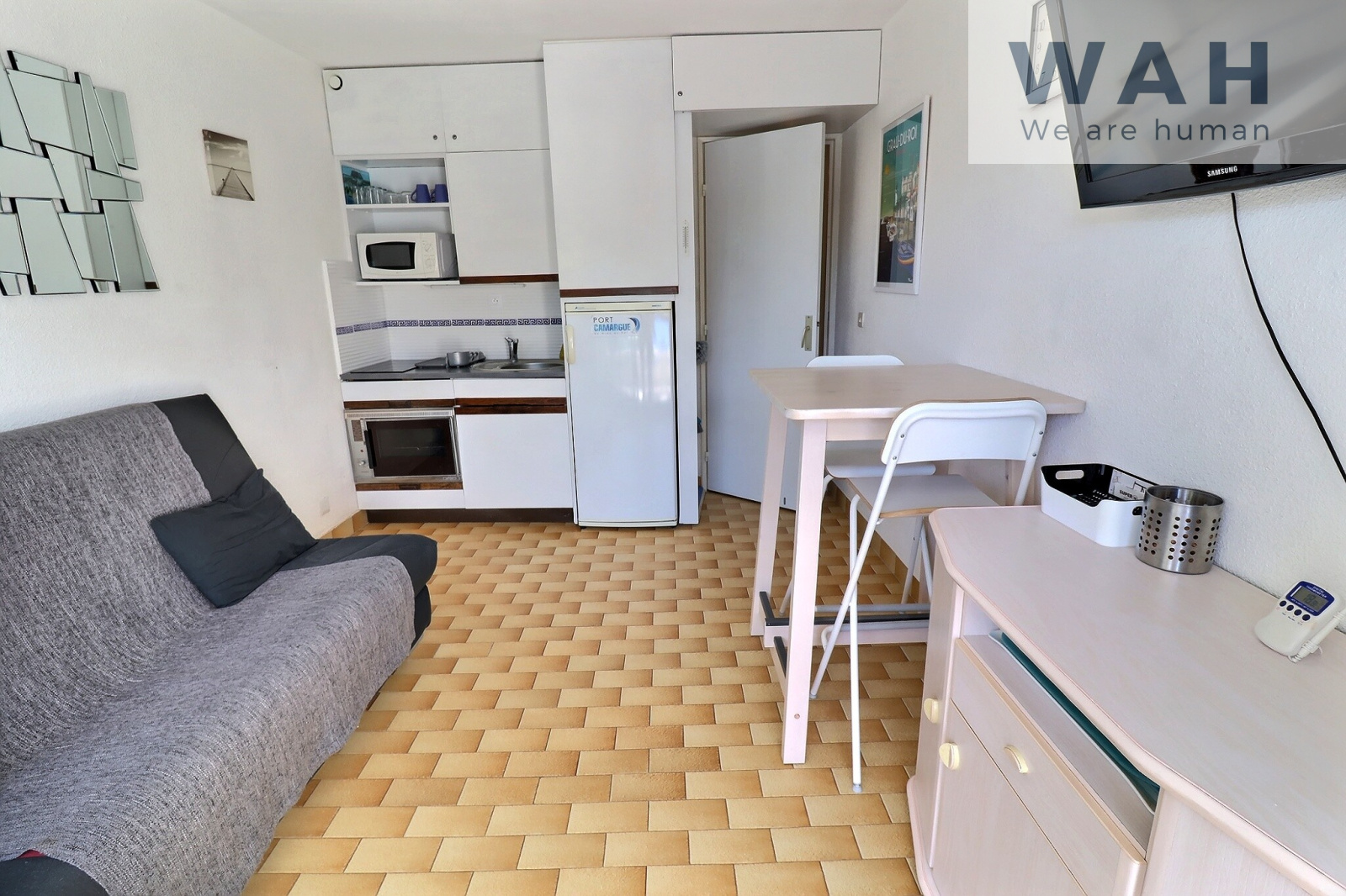 Port Camargue (30240)Evelyne (06.12.20.30.23) de l'agence WAH vous propose à la vente un STUDIO CABINE MEUBLE situé 30240 PORT CAMARGUE, plage sud, proche plage et commerces.
