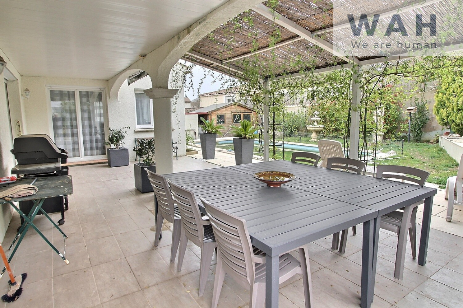 David de l'agence WAH Entre-Vignes, 06 75 15 25 16, vous propose EN EXCLUSIVITE, à Sommières, charmant village médiéval idéalement situé, à 30 minutes de Nîmes et de Montpellier, 10 minutes de l'accès à l'autoroute A9 et à 35 minutes des plages de la Grande Motte, dans un quartier calme, à proximité de la crèche, de l'école primaire et du collège, cette villa de 164m² comprenant :