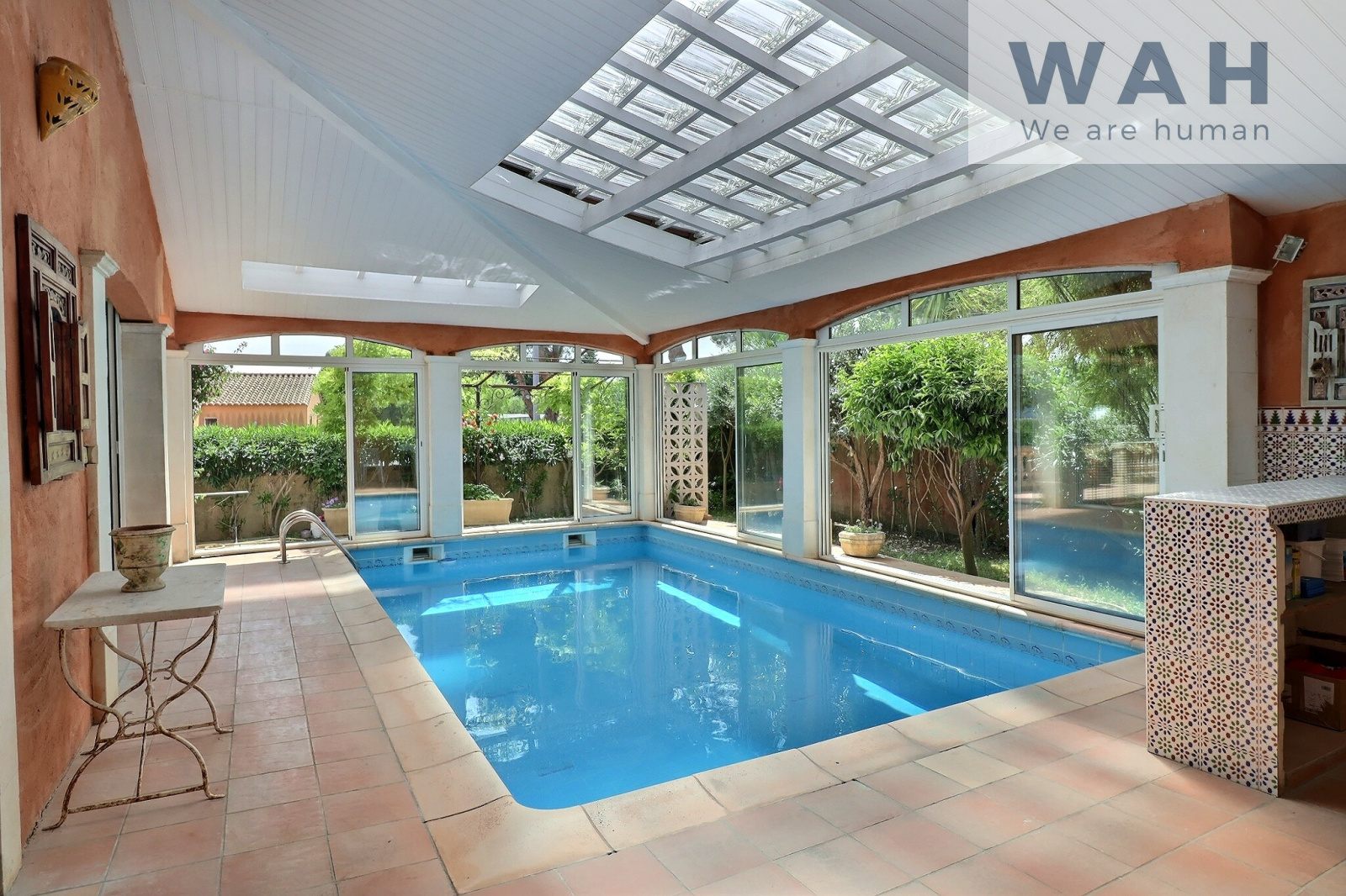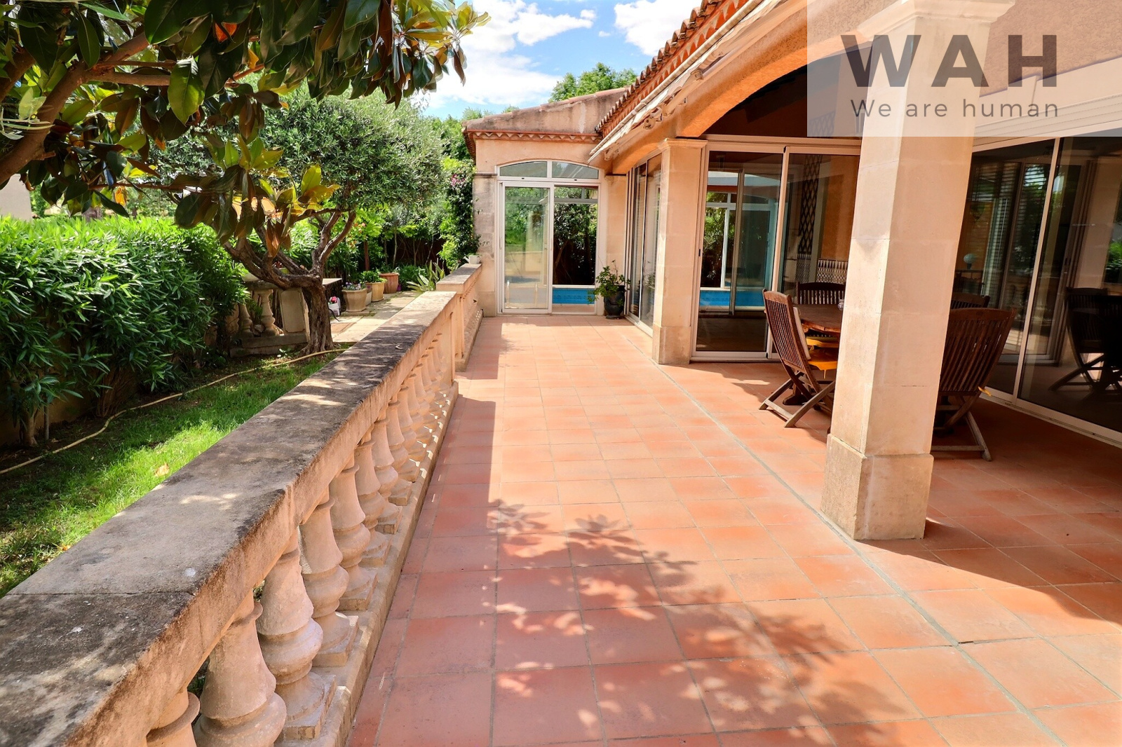 Aimargues (30470)Sylvia de l'agence WAH Lunel, 06 75 15 33 53, vous propose à la vente : Villa de plain-pied 6 pièces de 130m² (140m² utiles) édifiée sur 630m² de terrain arboré avec piscine couverte, située à Aimargues, village bénéficiant de toutes les commodités (commerces, écoles, crèches, santé), à seulement 5mn de l'autoroute A9, 20mn des plages, idéalement situé entre Nîmes et Montpellier.