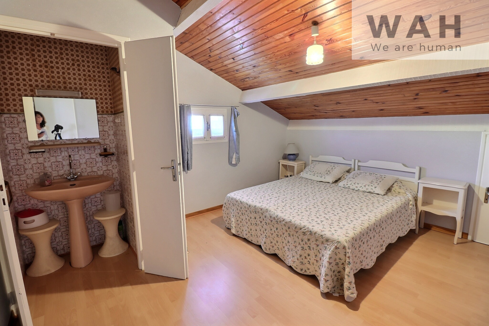 Au 2 ème niveau se trouvent deux chambres mansardées, dont une avec cabinet de toilette et des combles qui peuvent contenir beaucoup de rangements.