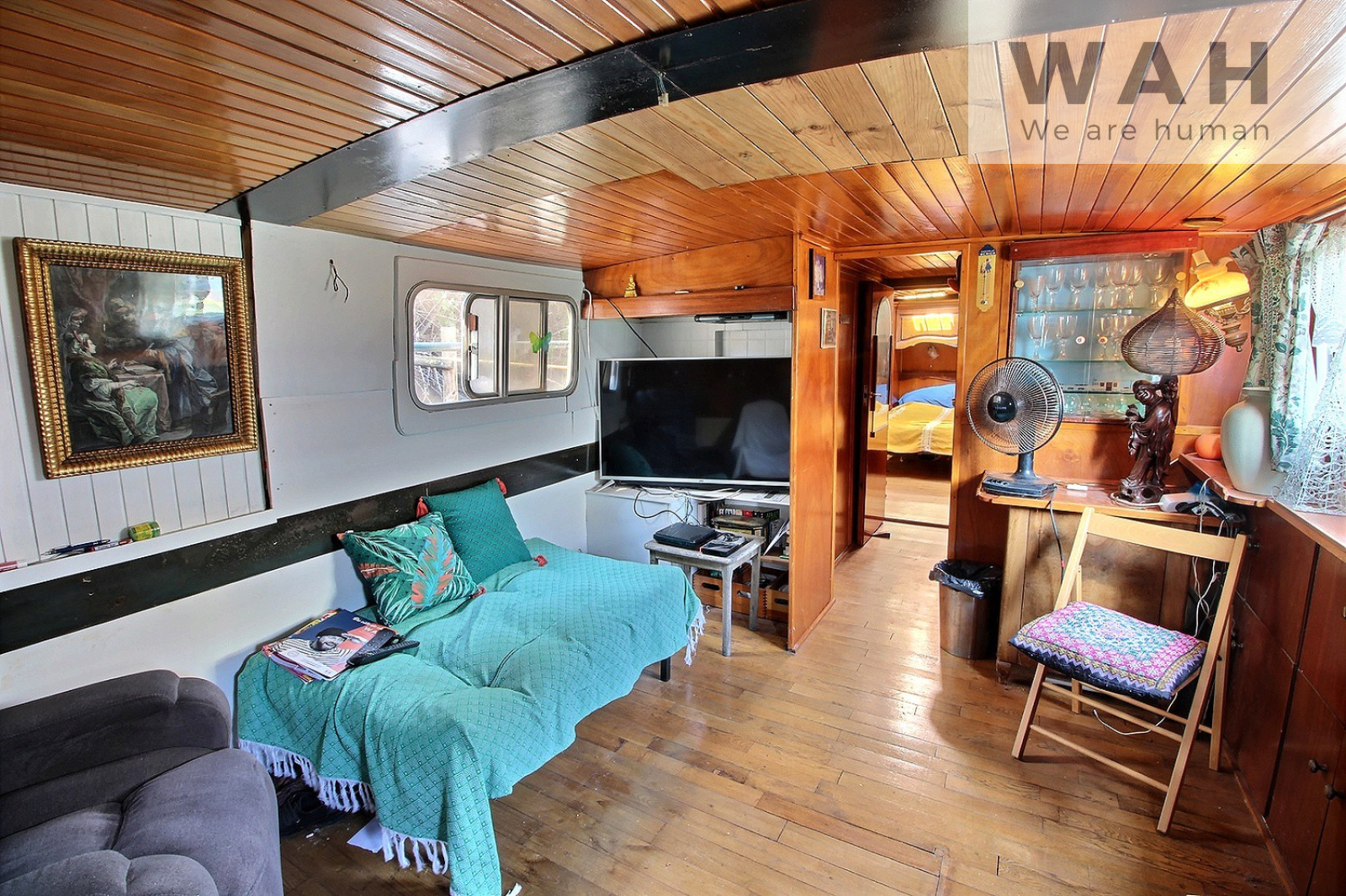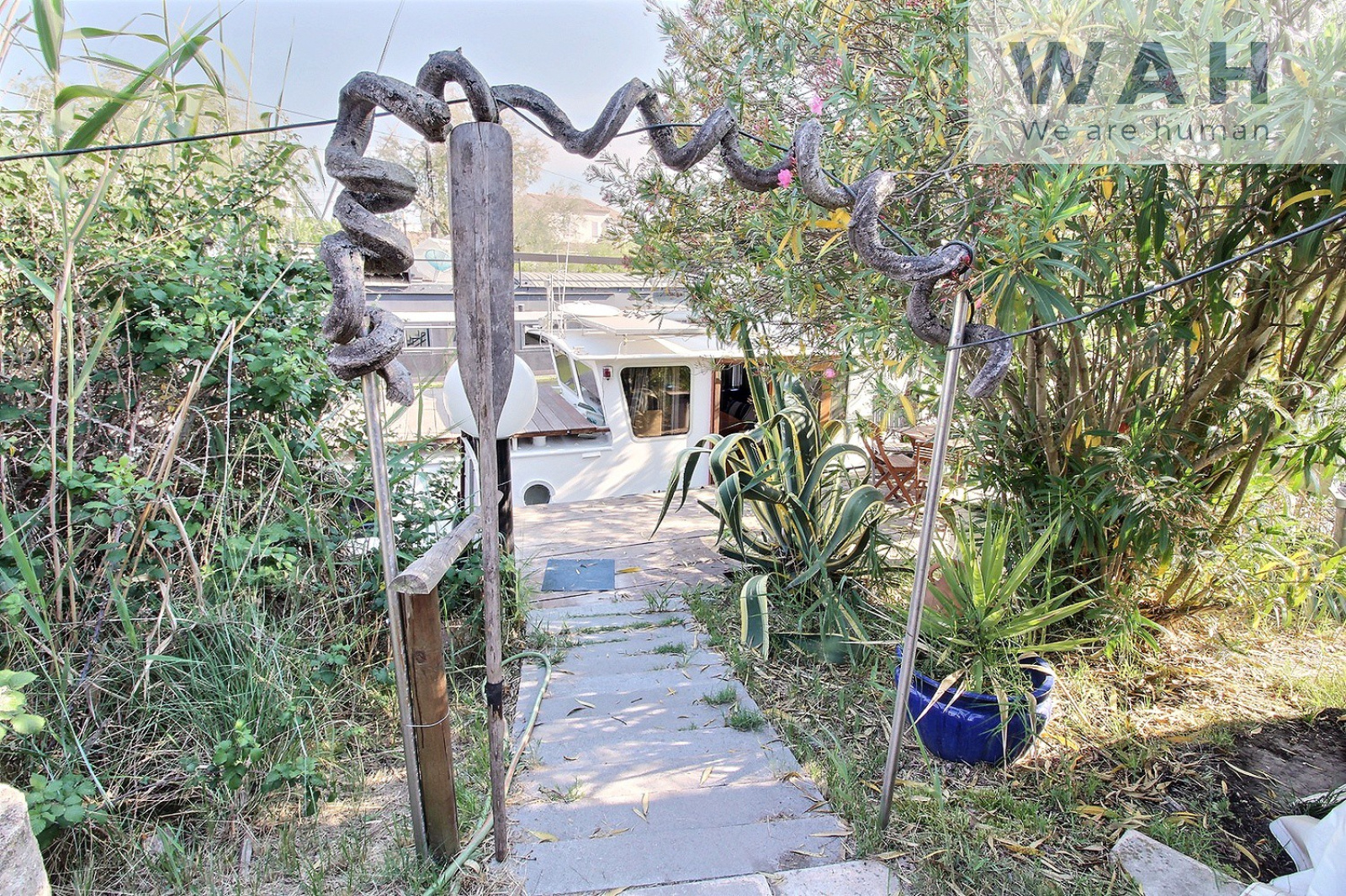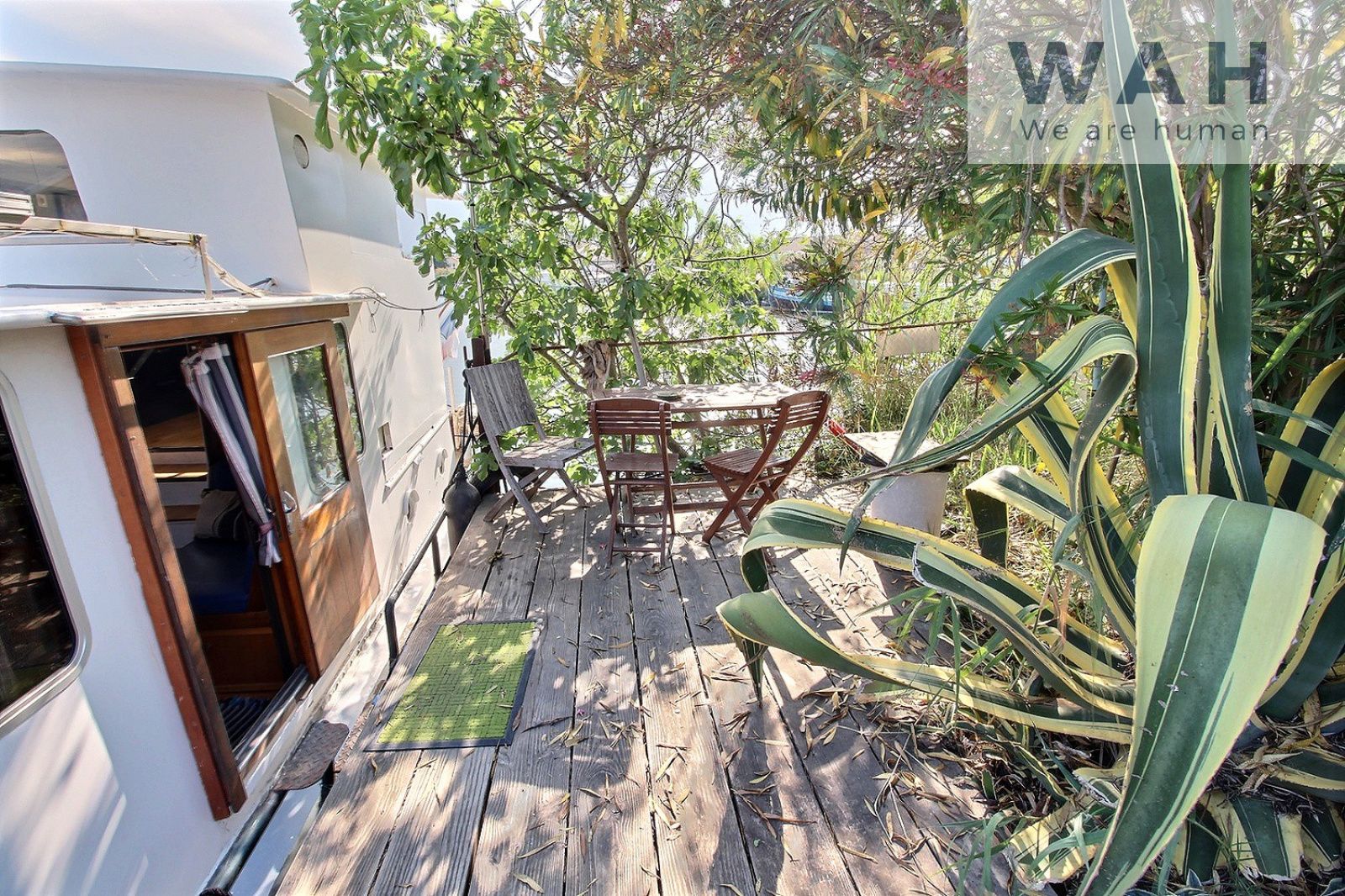 Cette péniche vous séduira par sa terrasse de 12 m2 et son emplacement privilégié sur un terrain de 210 m2 avec places de parking.