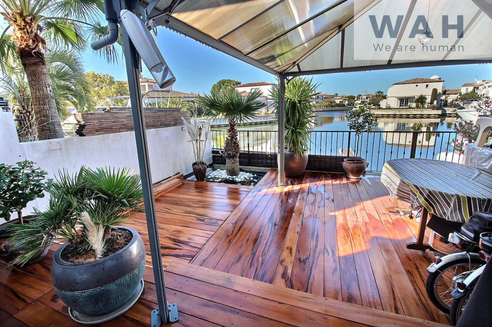 Les prestations sont nombreuses pour ce bien en parfait état : terrasse en bois exotique avec piscine en marbre 2.20 x 1.60, parking, climatisation par gainage, appontement 6 x 10 m + catway.