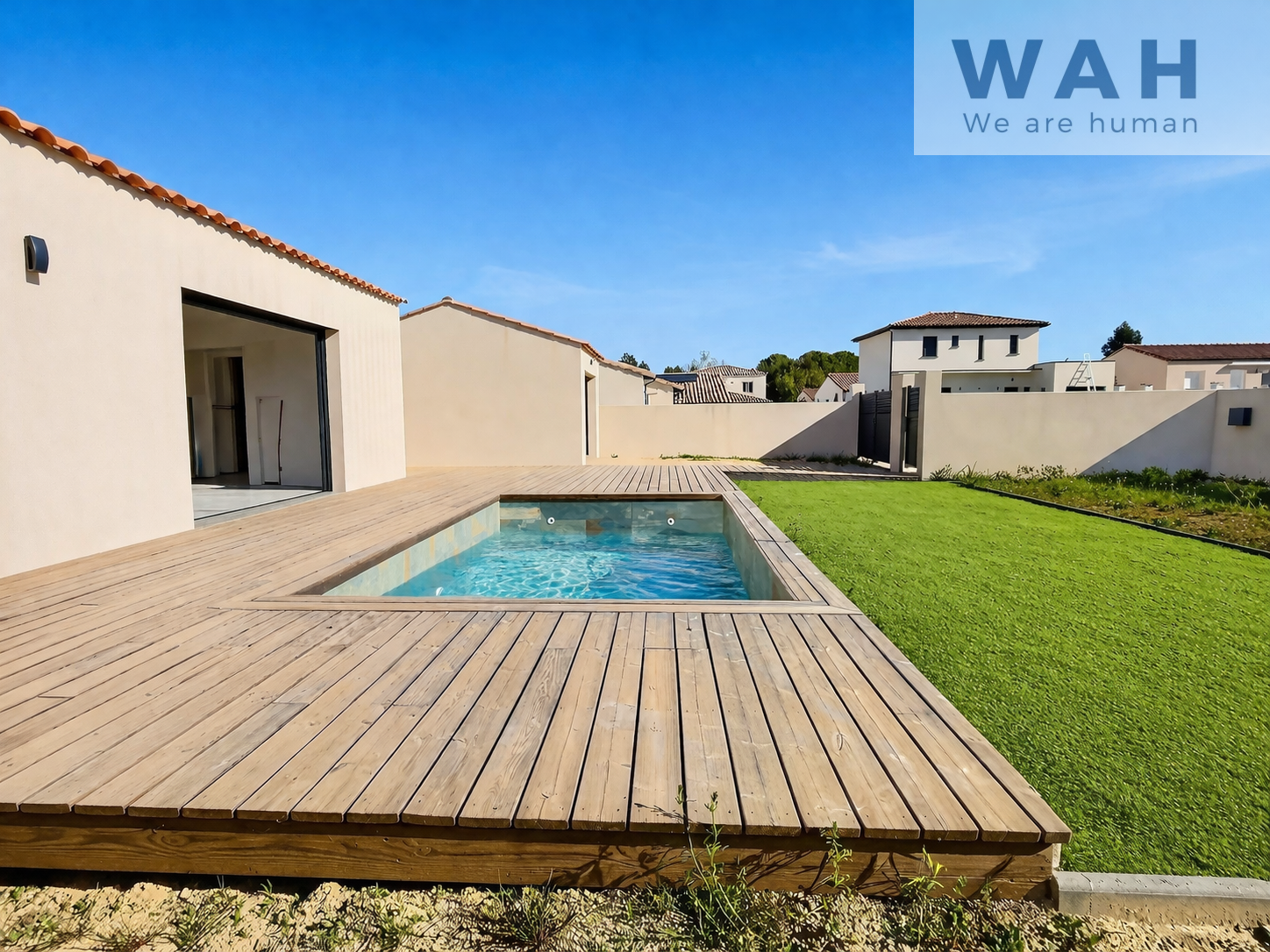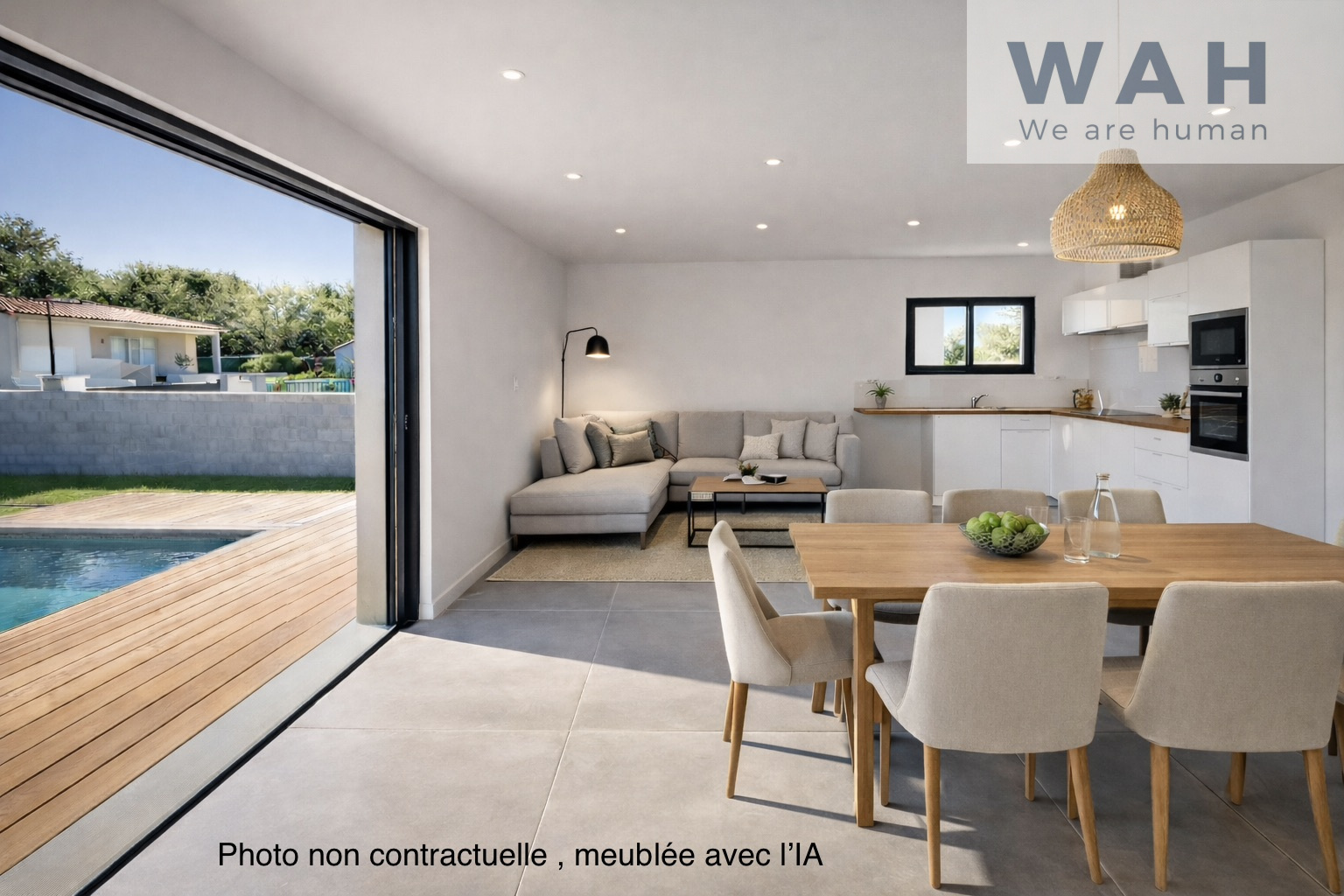 - Finitions soignées : baie vitrée à galandage, carrelage 120x120, piscine en pierre de Bali, parquet dans les chambres
