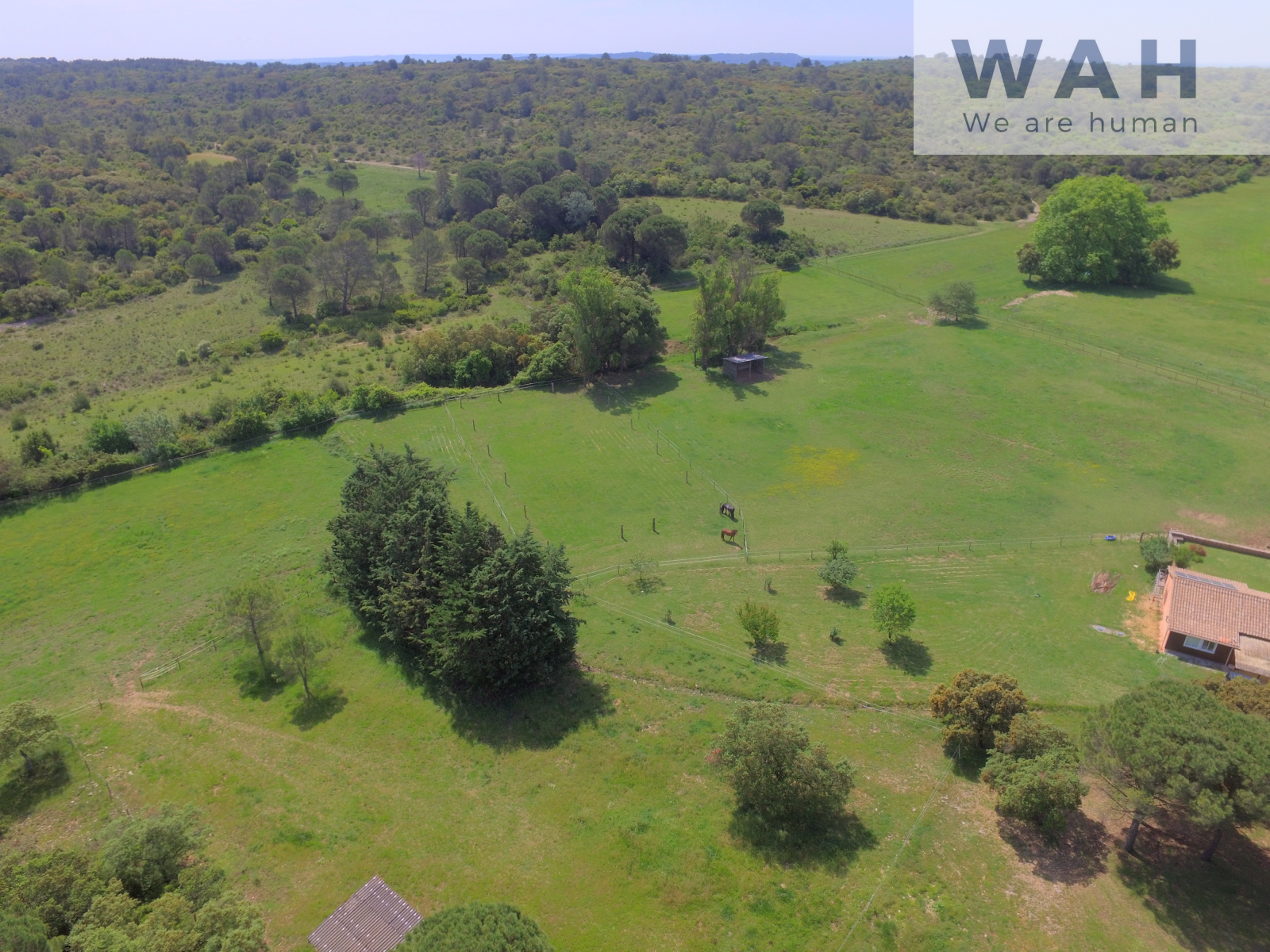 Cet ensemble est situé dans une zone naturelle sur près de 7 HA de prairies au milieu de la garrigue, quasi d'un seul tenant sur des terrains plats. Ces prairies et cet espace boisé sont entretenus selon les exigences de l'Office National des Forêts. Une partie des terrains est traversée par un petit ruisseau. La plupart des prairies sont équipées d'abris pour chevaux et entièrement clôturées.