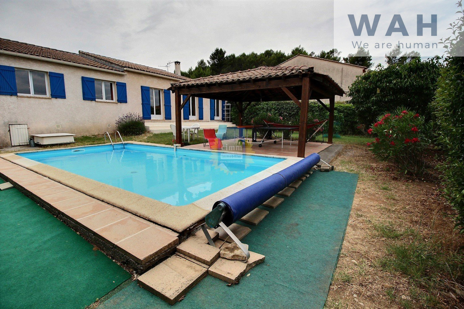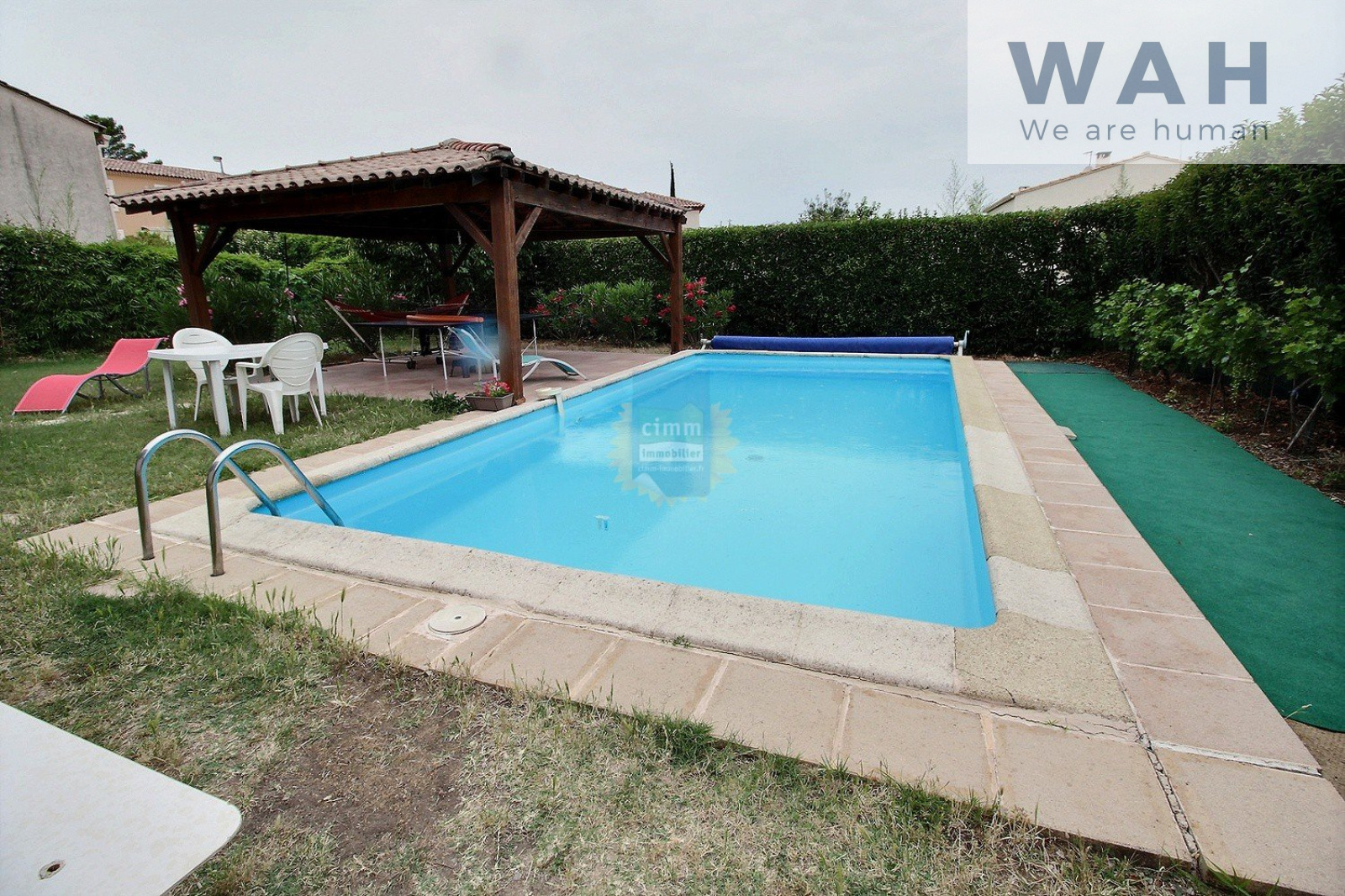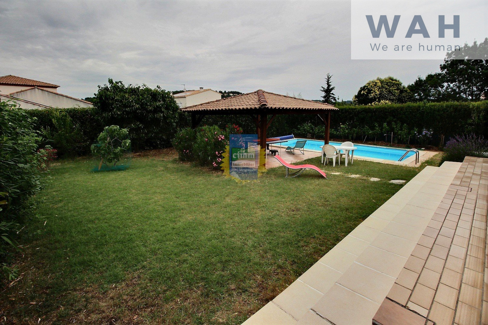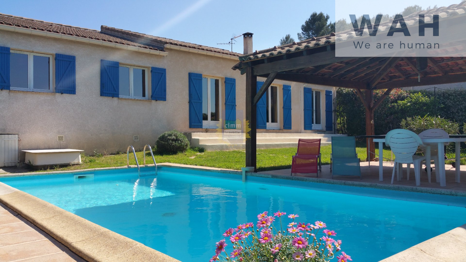 VENTE VILLA PLAIN PIED A GRABELS Cette villa de 112 m² habitables sur une parcelle de 654 m² arborée se situe à cinq minutes à pieds des commerces et des écoles, à cinq minutes en voiture du TRAMWAY. Cette villa se compose d'une entrée, d'un salon-séjour de 35 m², d'une cuisine équipée, de quatre chambres, d' une salle de bain, d' une salle d'eau avec wc et d' un wc séparé. Vous profiterez de deux terrasses dont une avec abri de 25 m², une piscine (8x4), un garage de 27 m² et un de 15 m², ainsi que d' une cave. C. Honoraires agence charge Vendeur. Votre Agent Co Christophe GAUTIER (enregistré au RSAC de Montpellier sous le numéro 444 479 570) au 06 25 54 08 69 ou votre Agence Cimm Immobilier au 04 67 54 41 76