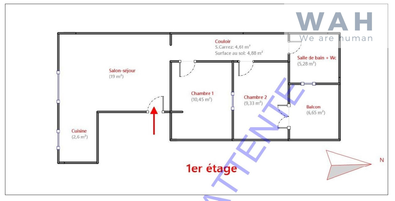 Au deuxième étage un appartement T3 de 54M² actuellement sans locataire.