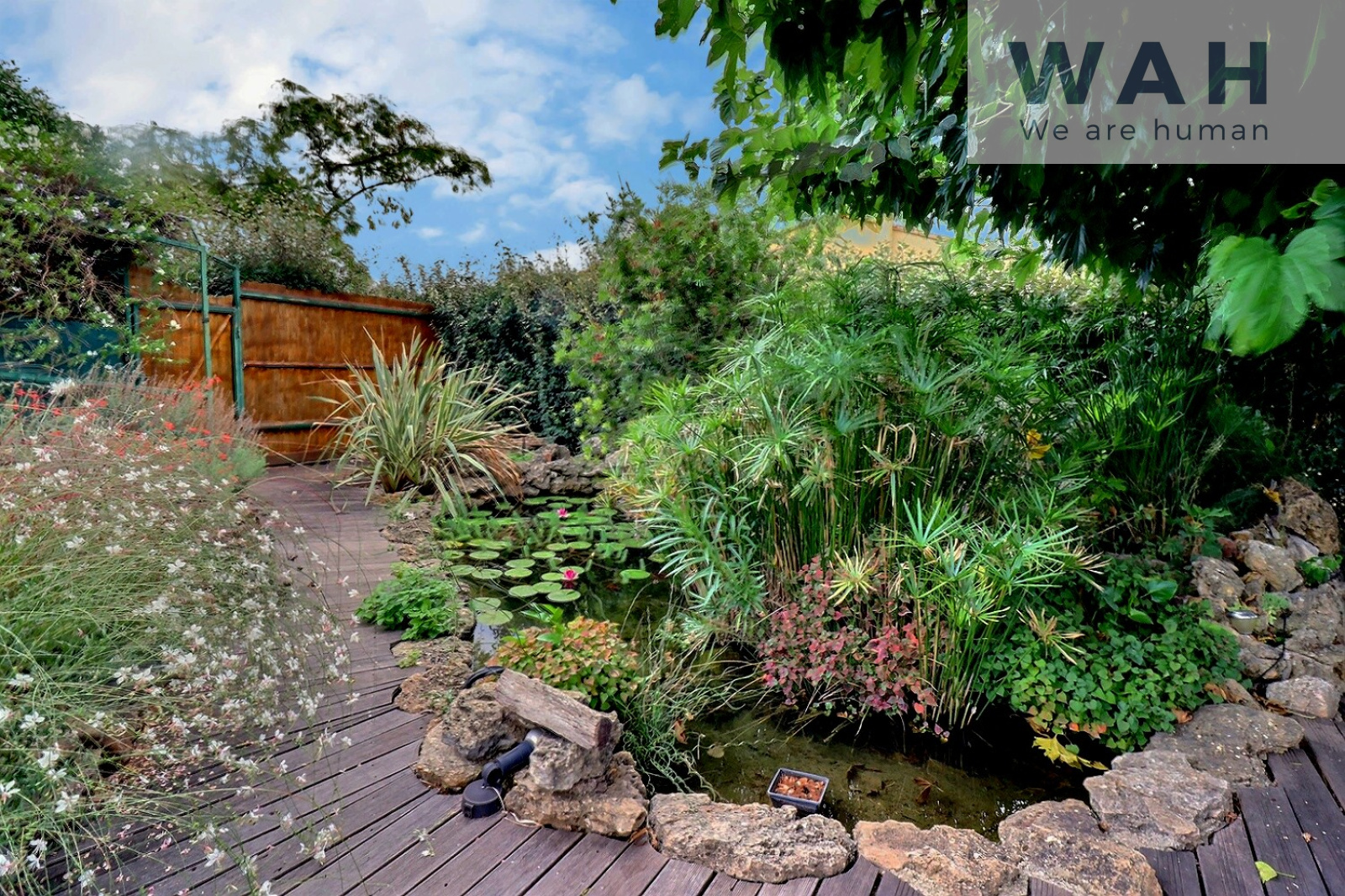Le jardin est équipé d'un puits qui dessert l'arrosage automatique, la piscine et le bassin de jardin.