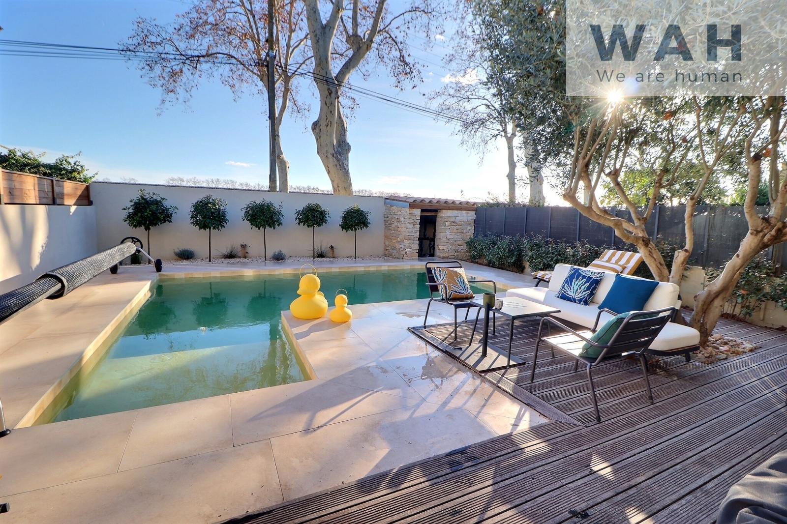 Côté jardin, vous bénéficierez d'une piscine au sel exposée plein Sud.